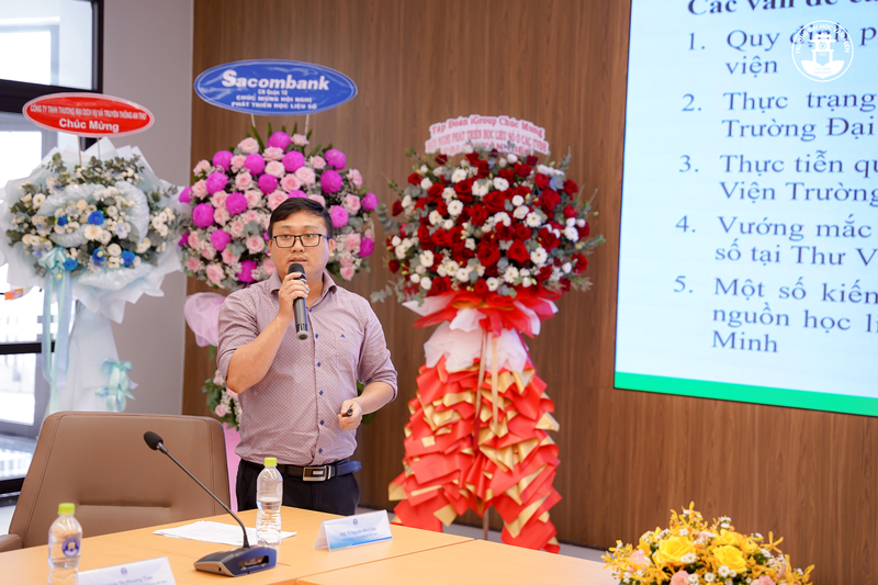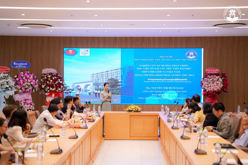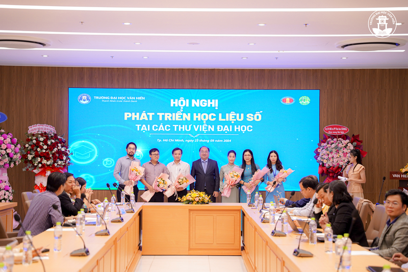 2024年9月23日,文献大学学习资源中心与企业合作中心协同胡志明市国家大学下属人文社科大学图书馆、胡志明市农林大学图书馆,成功举办了“高校图书馆数字学习资源发展”会议。此次活动汇聚了来自全国多所知名高校的专家、学者及代表。文献大学校长阮明德副教授、博士在会上向报告嘉宾赠送鲜花致谢