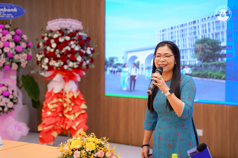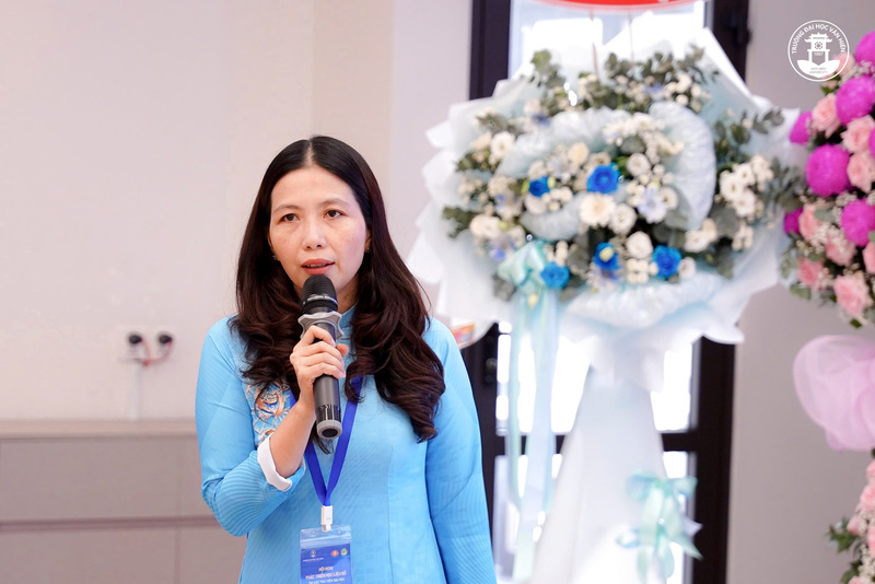 文献大学学习资源中心副主任阮氏化硕士在会议上作报告发言ị