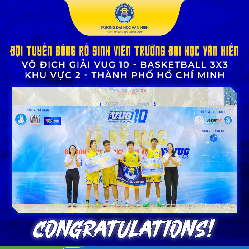 2024年10月13日,在胡春香体育馆(胡志明市第三郡),文献大学学生篮球队在第十届越南大学生运动会(VUG)第二区比赛中表现出色,荣获冠军。这一成绩是全体队员在整个赛季中不懈努力的最好回报。