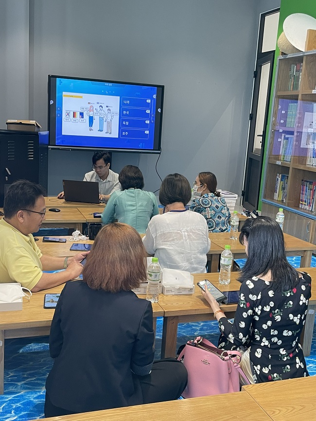Cũng trong sáng ngày 17/06 chuyên viên công ty giáo dục Visang đã có buổi hướng dẫn cách sử dụng phần mềm học tiếng Hàn thông minh_KLaSS.
