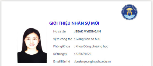 Chúng ta cùng hân hoan chào đón giảng viên mới_Th.S Baek Myeongjin đến với mái nhà VHU.