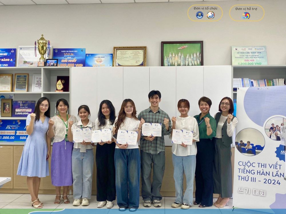 Ngày 05/04/2024 vừa qua, tại Cơ sở HungHau Campus (13E Nguyễn Văn Linh) Khoa Đông phương học - Trường Đại học Văn Hiến đã trao giải thưởng cuộc thi Viết Tiếng Hàn lần III - “쓰기 대회”cho các cá nhân có kết quả xuất sắc trong cuộc thi.