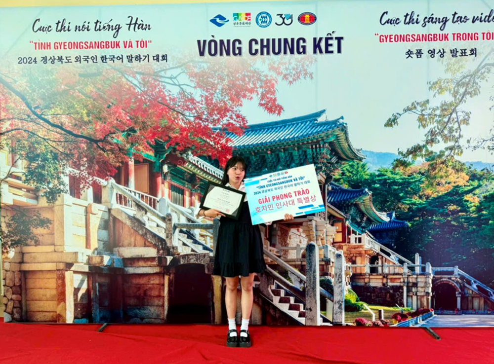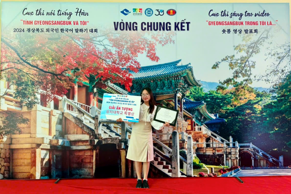 Ngày 6/12 vừa qua, các đại diện xuất sắc của trường Đại học Văn Hiến (VHU) đã tham gia vòng chung kết cuộc thi “Tỉnh Gyeongsangbuk và tôi” do Trường Đại học Khoa học Xã hội và Nhân văn (KHXH&NV) tổ chức. Cả ba sinh viên đến từ VHU đã vượt qua vòng loại để tiến vào vòng chung kết. Ba đại diện của VHU gồm: