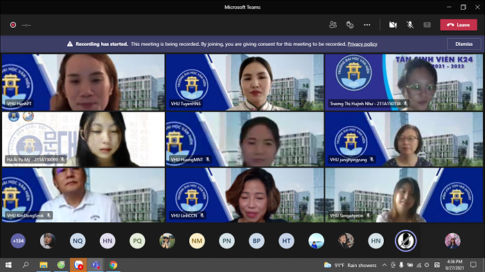 Sau khi lần lượt tất cả các giảng viên giới thiệu vài nét về bản thân và làm quen với tân sinh viên, cô Cao Thúy Oanh_Trưởng BM Hàn Quốc học đã trình bày về chương trình đào tạo, các cuộc thi học thuật trong Khoa và phát động phong trào Nghiên cứu khoa học sinh viên. Theo đó, năm học 2021-2022 BM HQH sẽ có các cuộc thi: