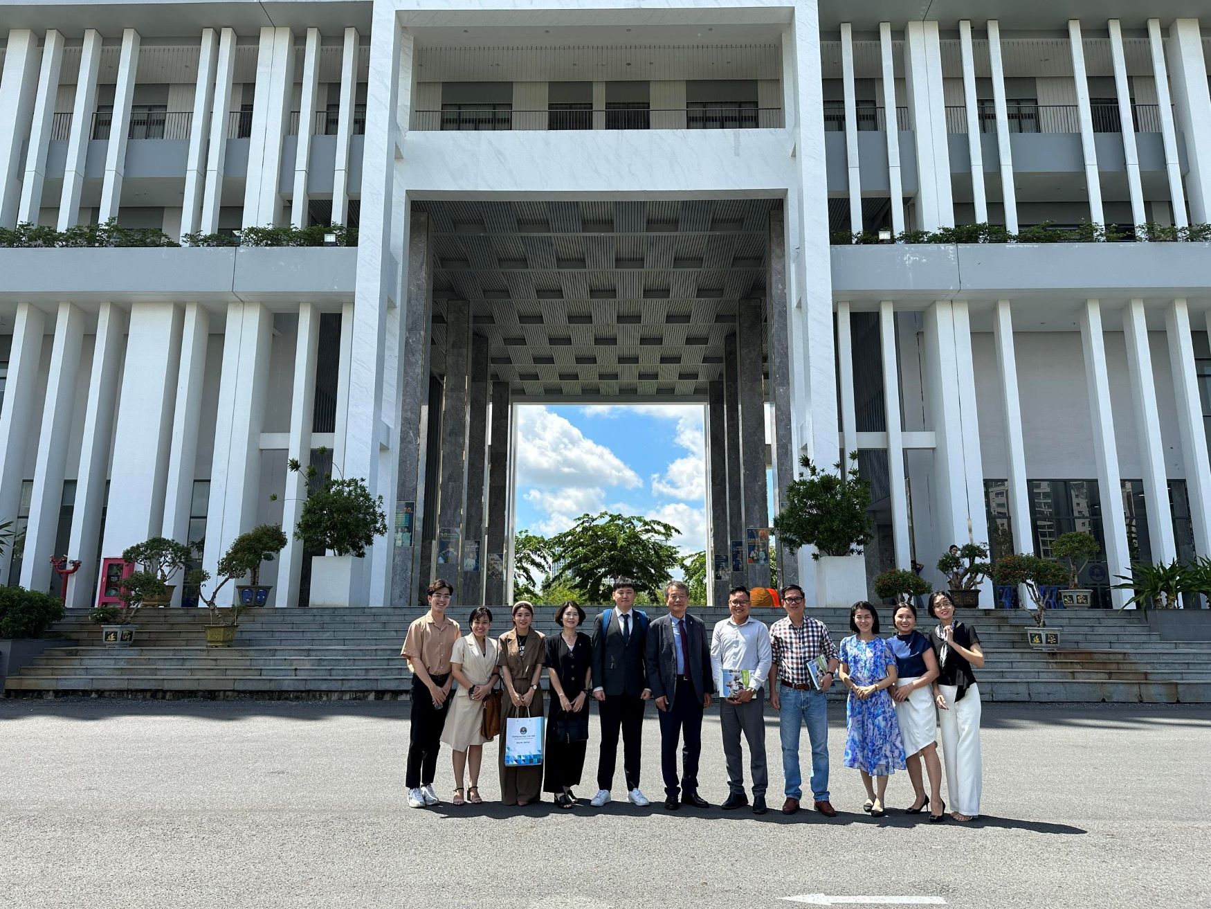 Hình 1: Chụp hình lưu niệm tại sân trường Đại học Văn Hiến