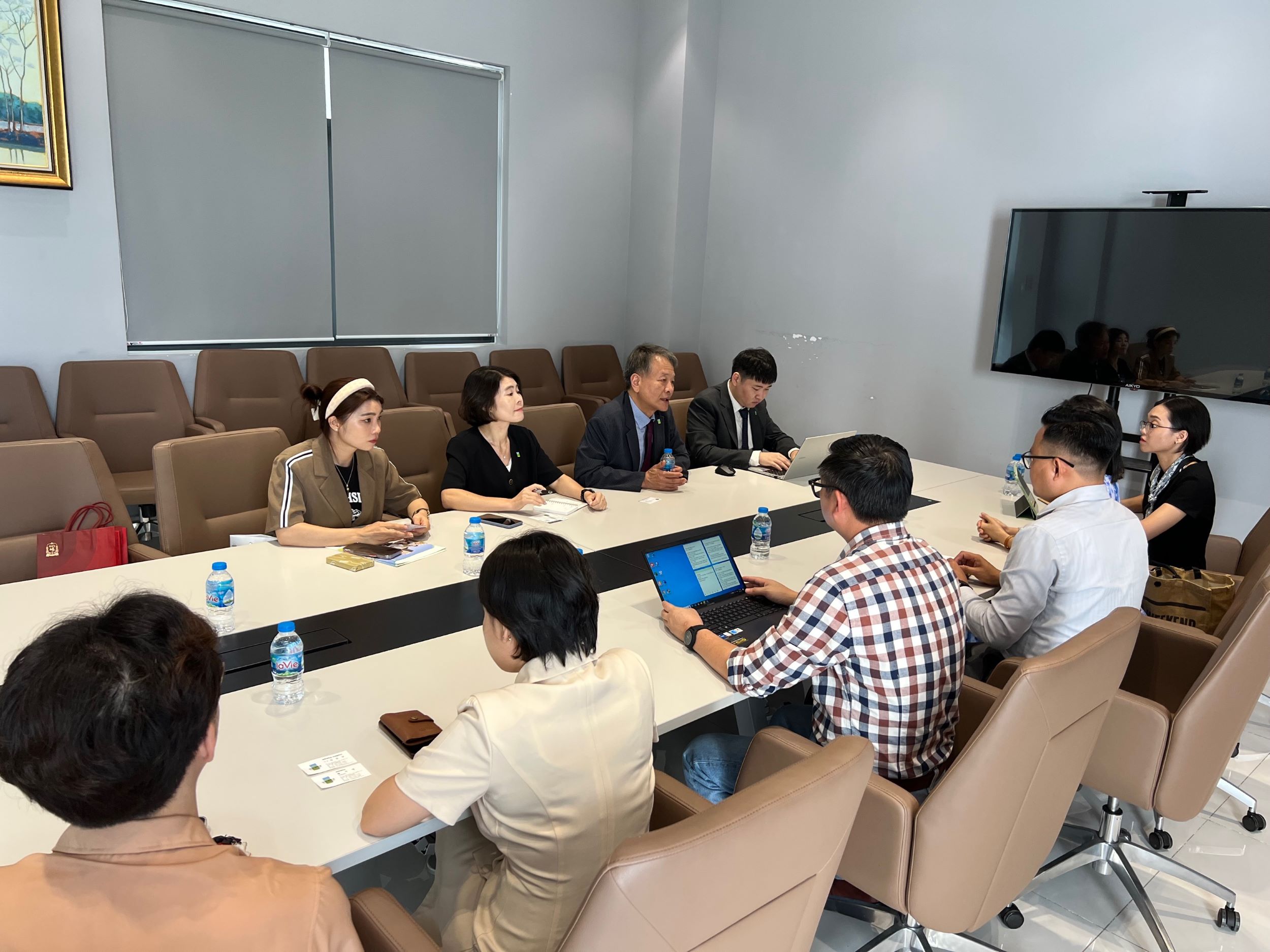 Hình 4: Giáo sư Kim Dong Gyu - Viện trưởng Viện Quan hệ Quốc tế, Đại học GwangJu trao đổi nội dung hợp tác