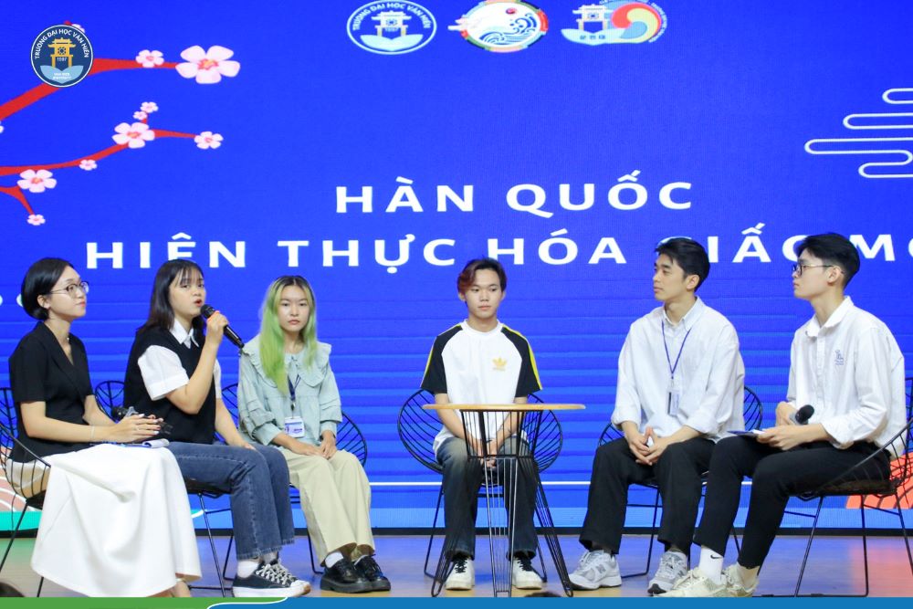 Bên cạnh đó, các bạn sinh viên đã được gặp gỡ với các anh, chị là Cựu sinh viên và sinh viên Khoa Đông Phương học đã - sắp tham dự chương trình trao đổi học tập tại các trường đại học hàng đầu Hàn Quốc chia sẻ về hành trình học tập ở "xứ sở Kim Chi" về văn hoá, kiến thức, kỹ năng mềm và bí quyết học tập trong quá trình là sinh viên trao đổi ở Hàn Quốc.